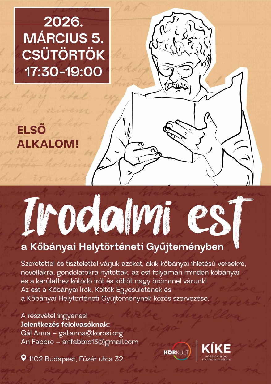 Szeretettel várnak minden irodalomkedvelőt 2026. március 5-én, csütörtökön 17:30-tól egy különleges közösségi élményre.