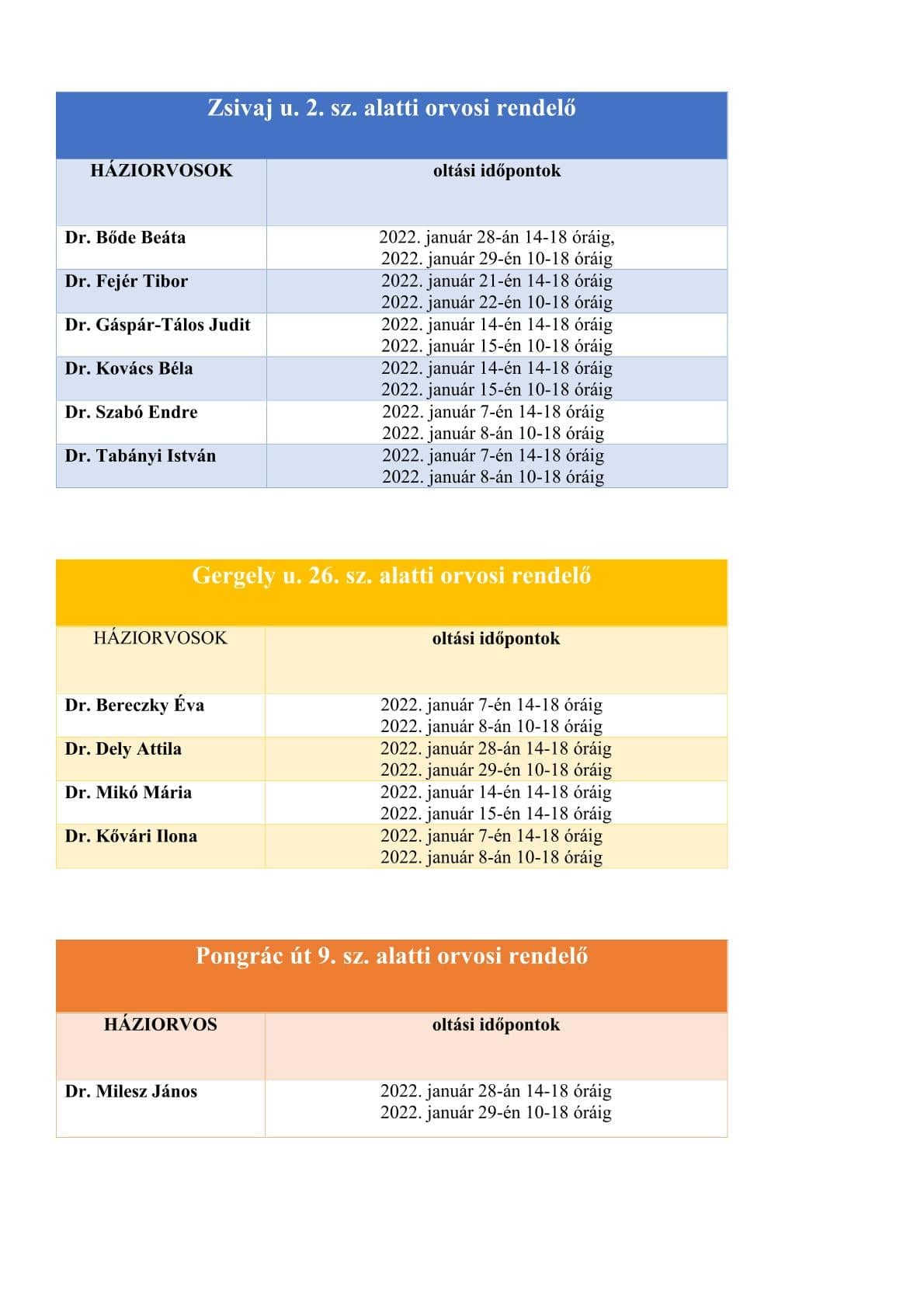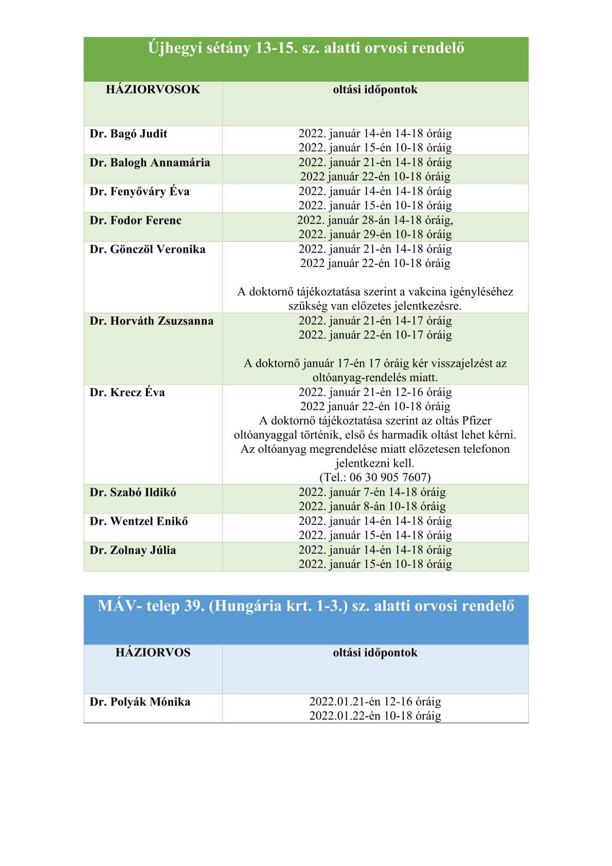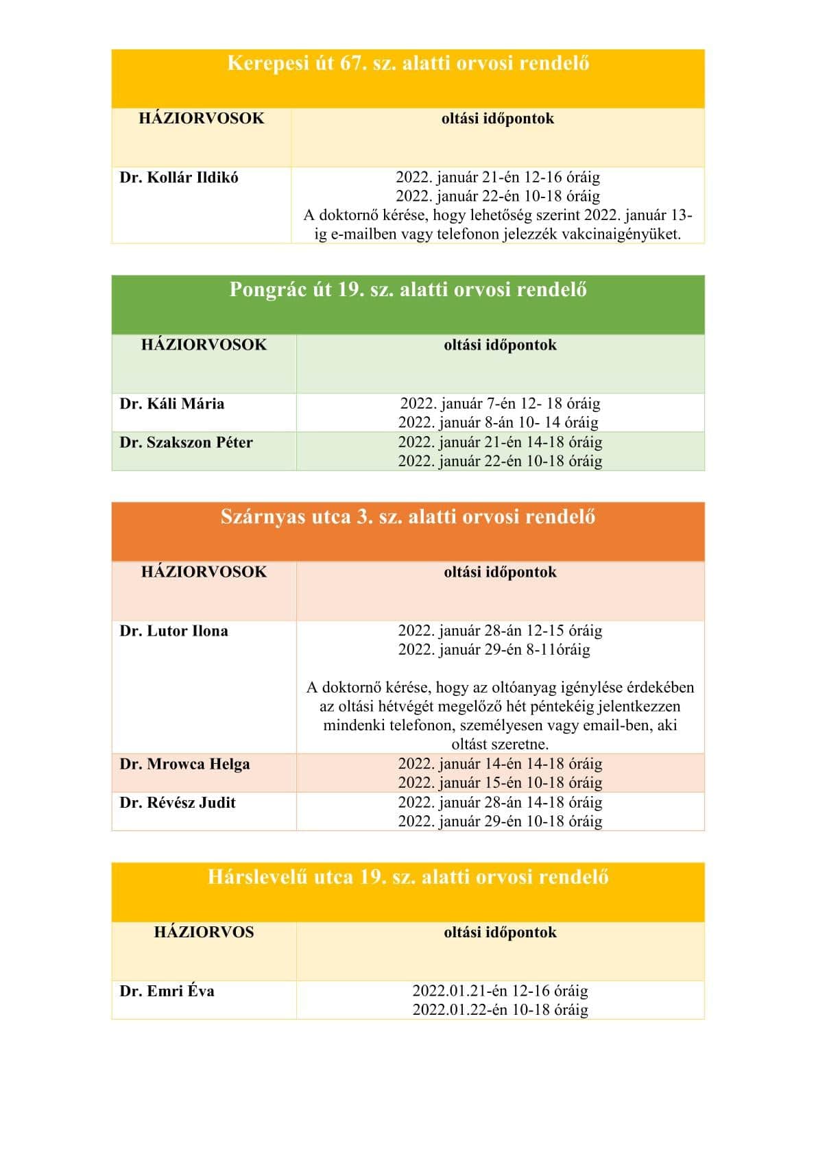 Az országos tisztifőorvos határozata szerint közzétették a kőbányai háziorvosok is a januári oltási időpontokat!