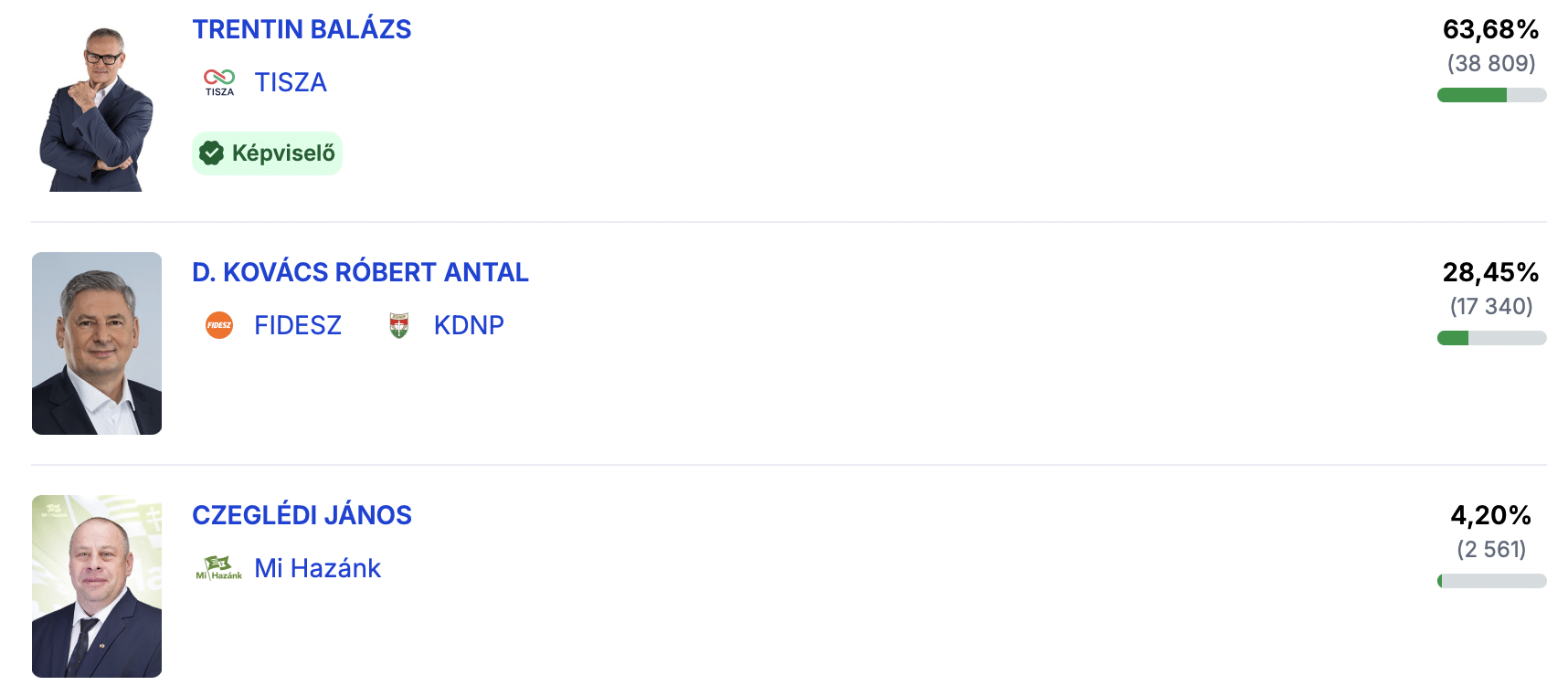A körzetben, amely hagyományosan az egyik legszorosabb csatáknak ad otthont, a választók most egyértelmű irányváltás mellett tették le a voksukat. A magas részvétel mellett zajló szavazáson a Tisza Párt helyi jelöltje a szavazatok többségét begyűjtve küldhet képviselőt a Parlamentbe, megtörve a korábbi erőviszonyokat.