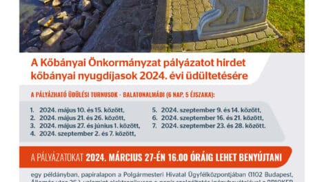 A Kőbányai Önkormányzat pályázatot hirdet kőbányai nyugdíjasok 2024. évi üdültetésére. A pályázat célja a kőbányai lakcímmel rendelkező nyugdíjasok...