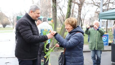 D. Kovács Róbert polgármester és csapata tulipánokkal köszöntötte a városrész lakóit.