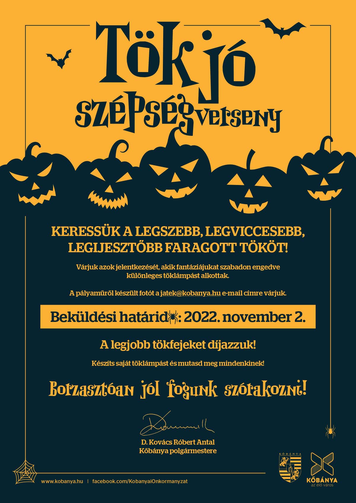 Töklámpás szépségverseny 2022.10.27. Oszd meg! Keresik a legszebb, legviccesebb, legijesztőbb faragott tököket. Részletek és határidő a plakáton: Ez is érdekelhet Helyi hírek • Szabadidő Ingyenes kínai gasztronómiai élmény Kőbányán 2 hónap Szabadidő Csaknem négyezren neveztek a tél legnagyobb futóeseményére 3 hónap Szabadidő Ismét lakossági madárszámlálás indul a lakosság bevonásával 5 hónap Koszorúzás a Nemzeti Gyásznap alkalmából II. Csőszfutás képekben Oszd meg!